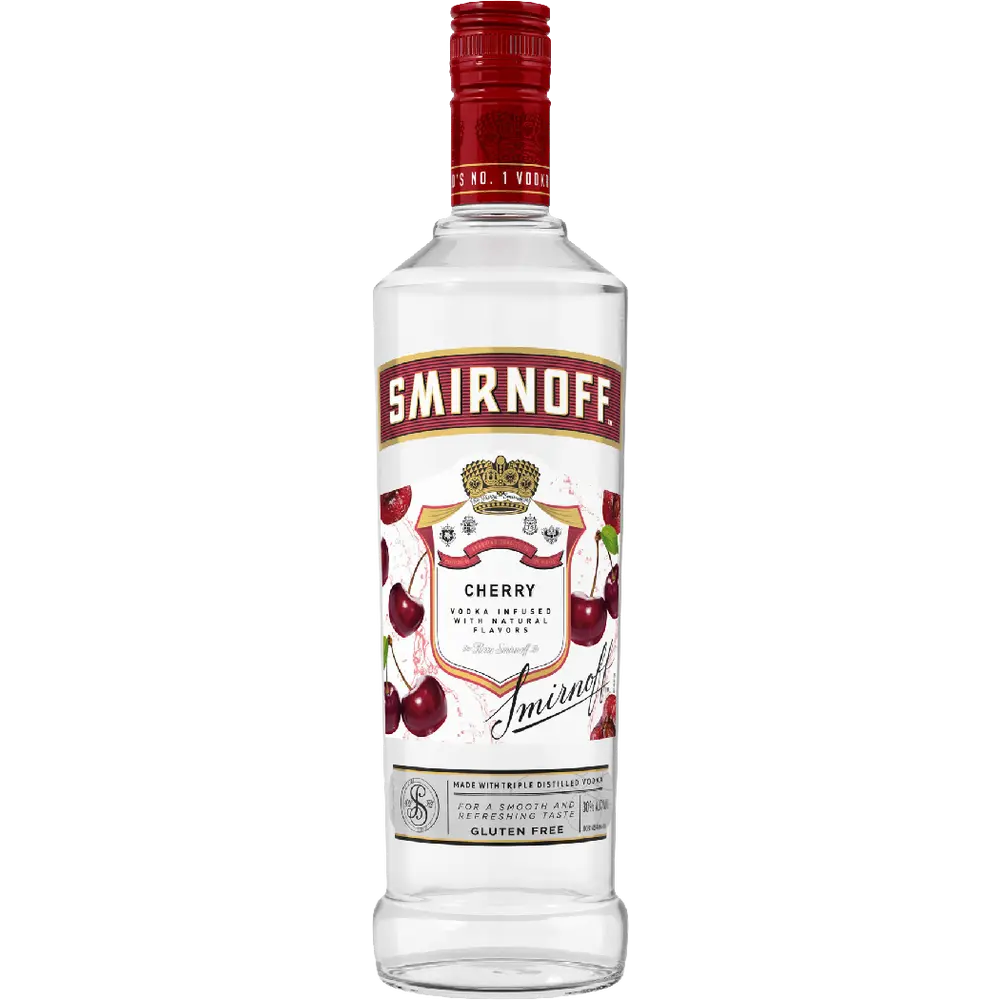 Smirnoff Vodka Cherry Flavored 60 750 ML is a vibrant and smooth vodka infused with the bold, juicy taste of ripe cherries. This flavorful spirit combines Smirnoff’s signature clean vodka profile with a sweet and tangy cherry essence that delivers a refreshing and lively drinking experience. Smirnoff Vodka Cherry Flavored 60 750 ML is crafted at 60 proof, making it light, versatile, and perfect for cocktails. From simple vodka sodas to fruity martinis, Smirnoff Vodka Cherry Flavored 60 750 ML adds a delicious cherry twist to any occasion. Smooth, crisp, and fruit-forward, Smirnoff Vodka Cherry Flavored 60 750 ML is ideal for parties, gatherings, or casual sipping. Truly, Smirnoff Vodka Cherry Flavored 60 750 ML brings together sweetness, tang, and smooth vodka quality in every sip.Smirnoff Vodka Cherry Flavored 60 750 ML