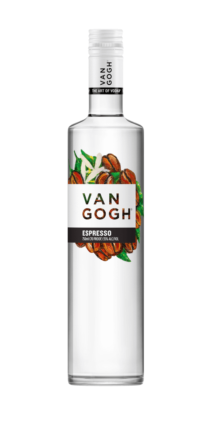 This rich and aromatic vodka, Van Gogh Espresso Vodka, is infused with premium Colombian coffee beans for a bittersweet and robust coffee character. Van Gogh Espresso Vodka begins with a bold coffee nose marked by fresh roasted beans and a hint of cocoa. Van Gogh Espresso Vodka offers a silky, velvety palate that transitions into subtle citrus and creamy cocoa notes. Van Gogh Espresso Vodka finishes smooth and clean, with lingering coffee richness and a touch of dark chocolate. Ideal neat, over ice, or in cocktails like espresso martinis, Van Gogh Espresso Vodka delivers coffee-forward complexity with refined clarityVan Gogh Espresso Vodka 1 L