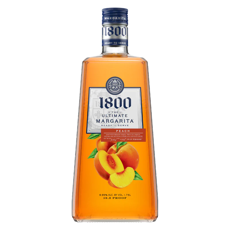 1800 The Ultimate Peach Margarita Ready to Drink blends premium 1800 Silver Tequila with natural, juicy peach and tangy lime flavors for a refreshing ready-to-serve cocktail. 1800 The Ultimate Peach Margarita Ready to Drink opens with buttery peach aroma balanced by citrus lime, leading to a velvety finish of fuzzy peach skin and light acidity. 1800 The Ultimate Peach Margarita Ready to Drink strikes an ideal harmony of sweetness and tang, making it perfect chilled over ice or blended with crushed iceWith just under 10% ABV, 1800 The Ultimate Peach Margarita Ready to Drink offers tropical flavor without heaviness on the palate. 1800 The Ultimate Peach Margarita Ready to Drink is consistently praised for its summer-ready vibe and ease of serving—simply chill, pour, and enjoy the harvest‑ripe peach profile . This large-format bottle delivers nearly five servings, making 1800 The Ultimate Peach Margarita Ready to Drink ideal for parties, poolside gatherings, or casual entertaining.