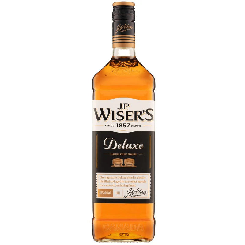 J.P. Wisers Deluxe Canadian Whisky 750 ML delivers a balanced profile of caramel, vanilla, and gentle rye spice. Whether enjoyed neat, on the rocks, or in cocktails, J.P. Wisers Deluxe Canadian Whisky 750 ML offers consistency and quality with every pour.