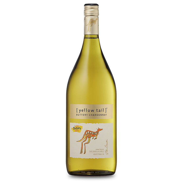 Yellow Tail Chardonnay Buttery South Eastern Australia 1.5 L, the perfect companion for those who love their wine rich and full-flavored. The Yellow Tail Chardonnay Buttery South Eastern Australia 1.5 L welcomes you with inviting aromas of ripe tropical fruit, juicy peach, and baked apple, all laced with hints of vanilla and butterscotch. On the palate, the Yellow Tail Chardonnay Buttery South Eastern Australia 1.5 L offers generous flavors of pineapple, melon, and creamy oak, finishing with a velvety, buttery smoothness that lingers long after each sip. Share Yellow Tail Chardonnay Buttery South Eastern Australia 1.5 L at gatherings or enjoy on its own for a cozy night in.